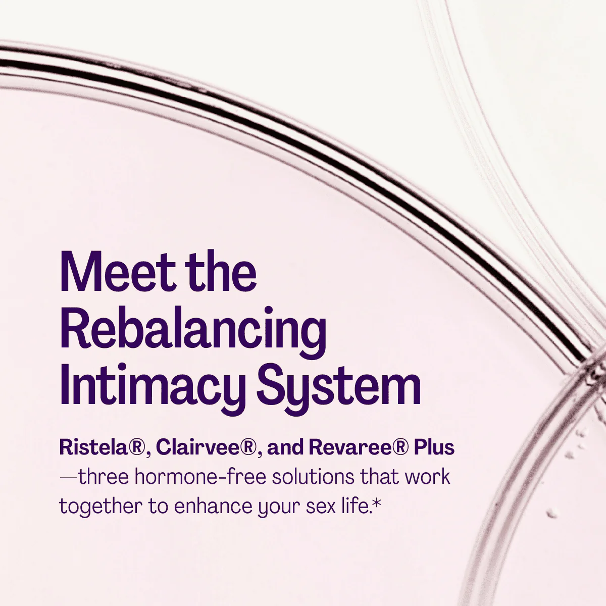 Meet the Rebalancing Intimacy System, featuring Ristela®, Clairvee®, and Revaree® Plus—three hormone-free solutions that work together to enhance your sex life.*