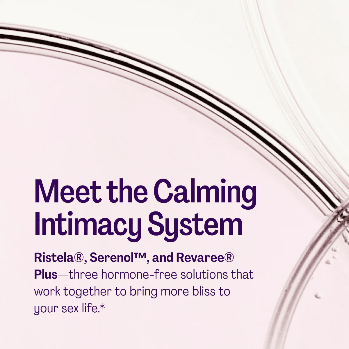 Meet the Calming Intimacy System, featuring Ristela®, Serenol™, and Revaree® Plus—three hormone-free solutions that work together to bring more bliss to your sex life.*