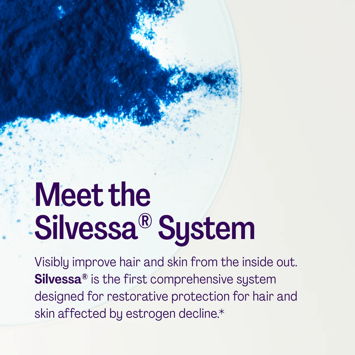 Visibly improve hair and skin from the inside out. Silvessa® is the first comprehensive system designed for restorative protection for hair and skin affected by estrogen decline.*